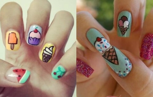 女生对甜品都有着说不清道不明的执着,不开心的时候吃一些甜点,既能补充能量,又能让自己开心一些。对于特别喜欢甜点的女生来说,汇集了冰棍、甜筒、蛋糕、西瓜等等甜点的糖果色美甲真是充满了诱惑力,简直一见就要流口水啊有木有!