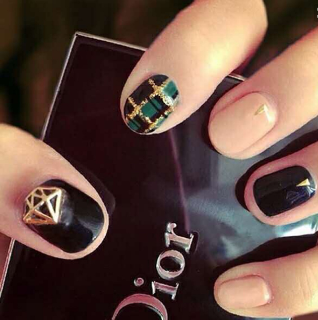 STYLE 5:极简风中出现变化最多的可要数三角形了。无论是什么形态什么颜色的三角形,随着搭配都会有种很美的设计感。STYLE 6:不知道什么时候兴起图上这种涂一半的美甲,大多都是裸色在搭配一个喜欢的颜色,很好的体现出极简风的美感。