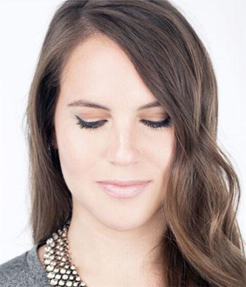Step3:再从外眼角向内眼角画黑色下眼线,画至下眼睑的中间,并刷上睫毛膏,让睫毛浓密卷翘。