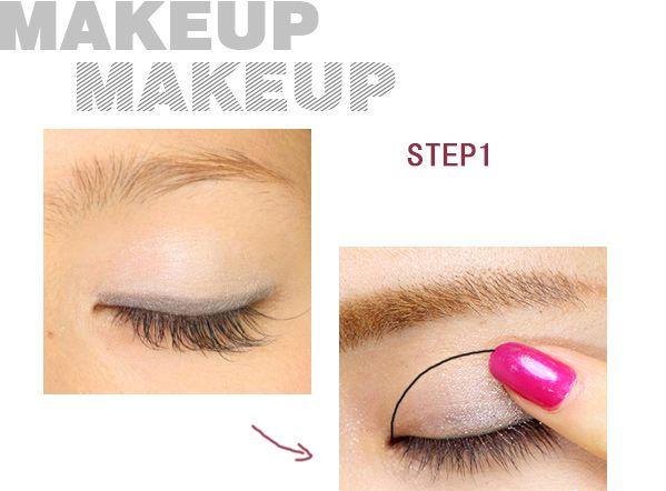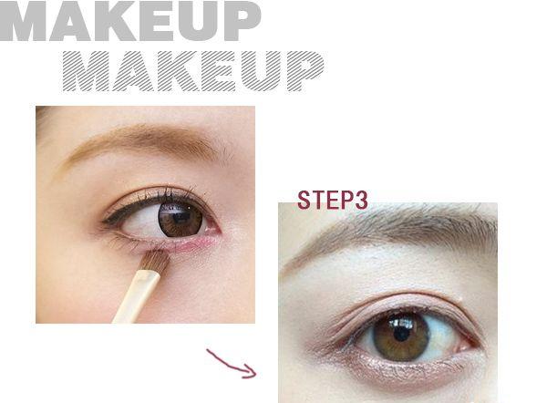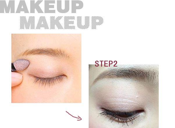STEP1 上眼皮在轻薄的擦上灰色眼影,随后用手指或者眼影棒在眼褶部分晕开,可以选择雾面的质地或是珠光质地都行,重点是只需要轻涂在眼褶部分即可。如果涂满整个眼窝的话会看起来妆感太重、太深邃,这样的话比较适合晚宴的妆容。
