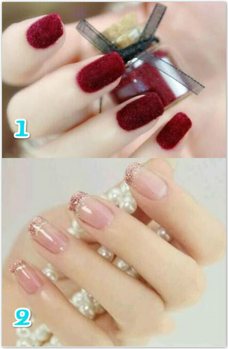 虽然绒面美甲已经流行蛮久了,但一点也不能阻挡它成为新娘子最爱的美甲图案之一的脚步,特别是绒面配上酒红色的美甲,不知不觉就把新娘子的优雅、时尚以及明媚尽显。